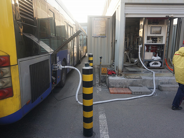 ロサンゼルスのスモッグに代表されるように、排気ガスによる大気汚染に悩まされていた米国は、以前から天然ガスを燃料としたバスの導入に積極的でした。また、バイオ由来の天然ガス開発にも熱心で、バイオ天然ガス用にRNG(Renewable Natural Gas)という造語で普及を図っています。欧州とおなじように各燃料技術に優劣をつけず、公平に競争をさせています。欧州では液化したLNGで長距離、重量輸送をするのが主流でしたが、LNGはボイルオフガスの管理が必要なため、管理が不要なCNGに人気があります。CNG充填所の数は1,730箇所で建設中が50箇所。LNG充填所数は182箇所で建設中が38箇所です。